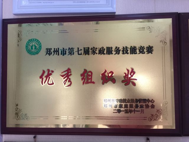 公司榮獲鄭州市第七屆家政服務技能競賽優秀組織獎